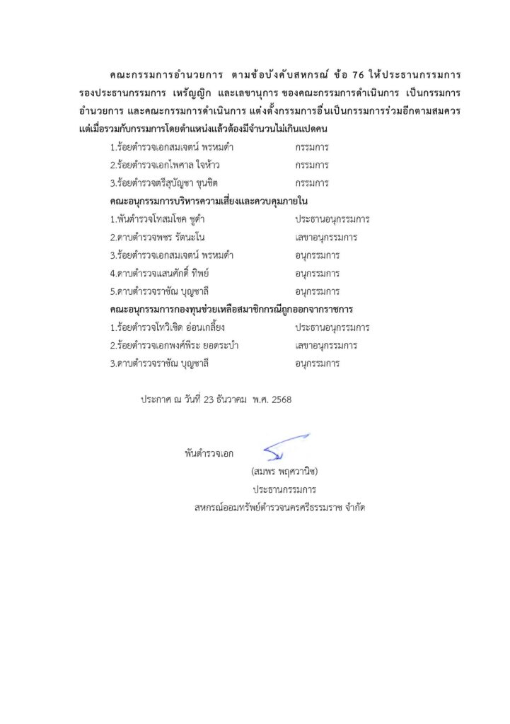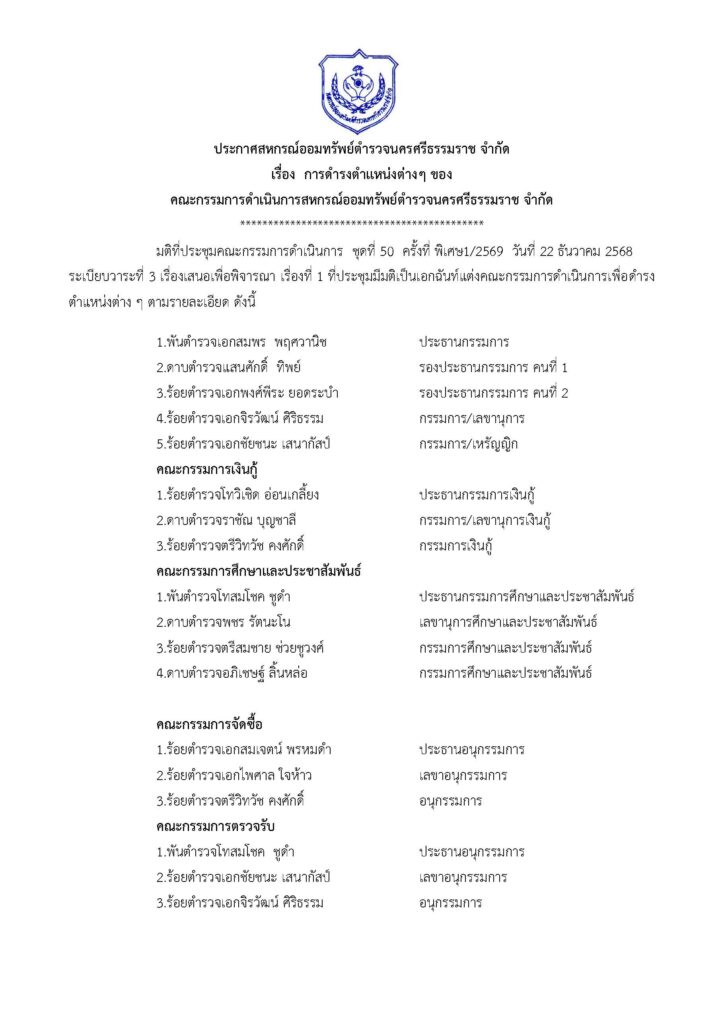 ประกาศสหกรณ์ออมทรัพย์ตำรวจนครศรีธรรมราช จำกัด เรื่อง การดำรงตำแหน่งต่าง ๆ ของคณะกรรมการดำเนินการสหกรณ์ออมทรัพย์ตำรวจนครศรีธรรมราช จำกัดBy Admin_coop / December 25, 2025 ประกาศสหกรณ์ออมทรัพย์ตำรวจนครศรีธรรมราช จำกัด เรื่อง การดำรงตำแหน่งต่าง ๆ ของคณะกรรมการดำเนินการสหกรณ์ออมทรัพย์ตำรวจนครศรีธรรมราช จำกัด Views: 3