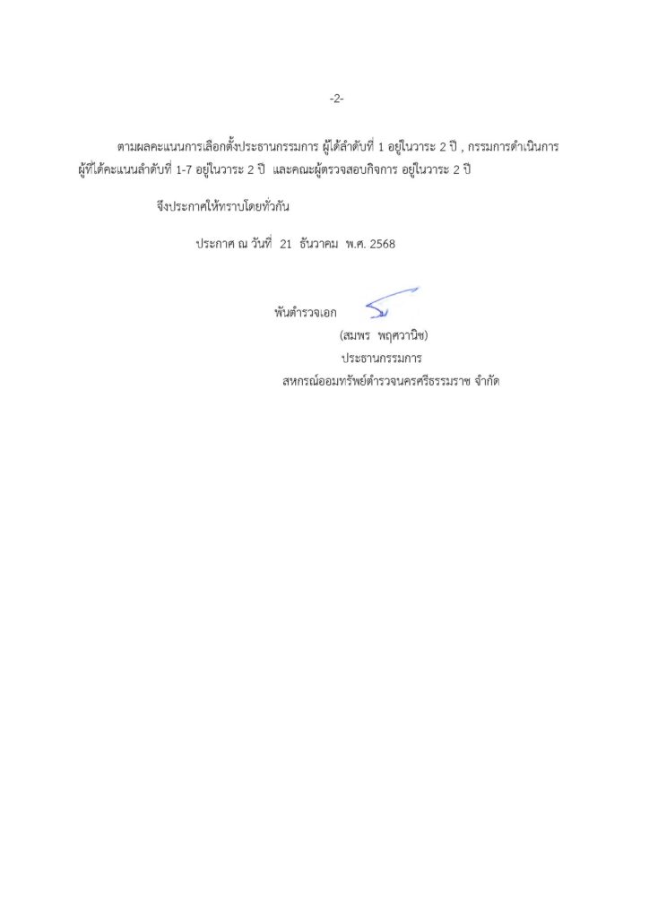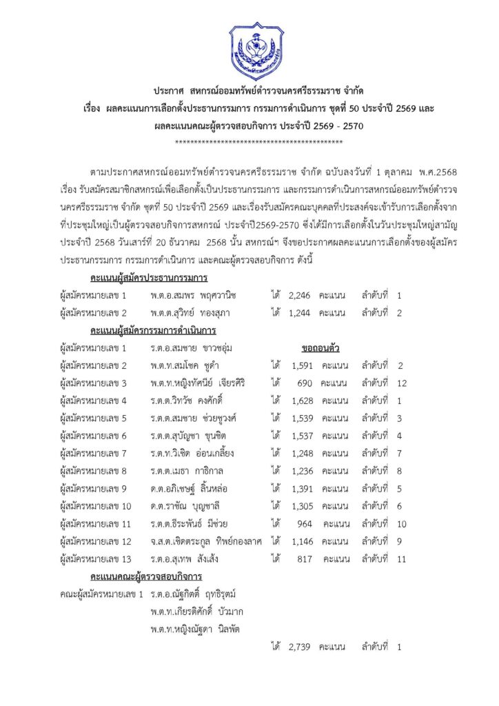 ประกาศ สหกรณ์ออมทรัพย์ตำรวจนครศรีธรรมราช จำกัด เรื่อง ผลคะแนนการเลือกตั้งประธานกรรมการ กรรมการดำเนินการ ประชุดที่ 50 ประจำปี 2569 และผลคะแนนคณะผู้ตรวจสอบกิจการ ประจำปี 2569-2570By Admin_coop / December 23, 2025 ประกาศสหกรณ์ออมทรัพย์ตำรวจนครศรีธรรมราช จำกัด เรื่อง ผลคะแนนการเลือกตั้งประธานกรรมการ กรรมการดำเนินการ ชุดที่ 50 ประจำปี 2569 และผลคะแนนคณะผู้ตรวจสอบกิจการ ประจำปี 2569 – 2570 Views: 10