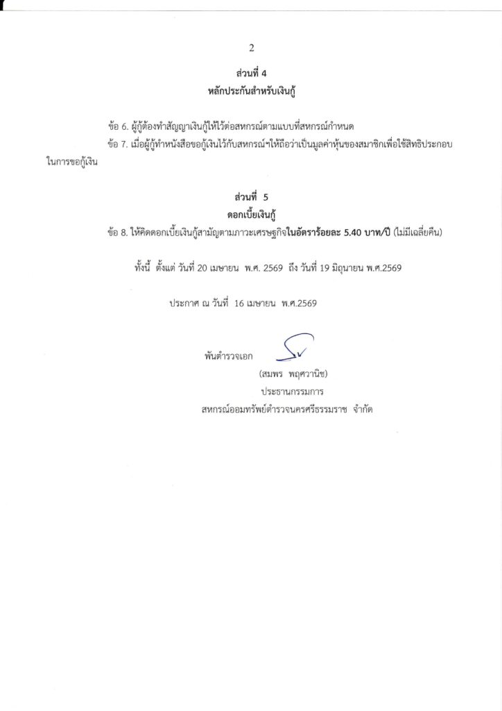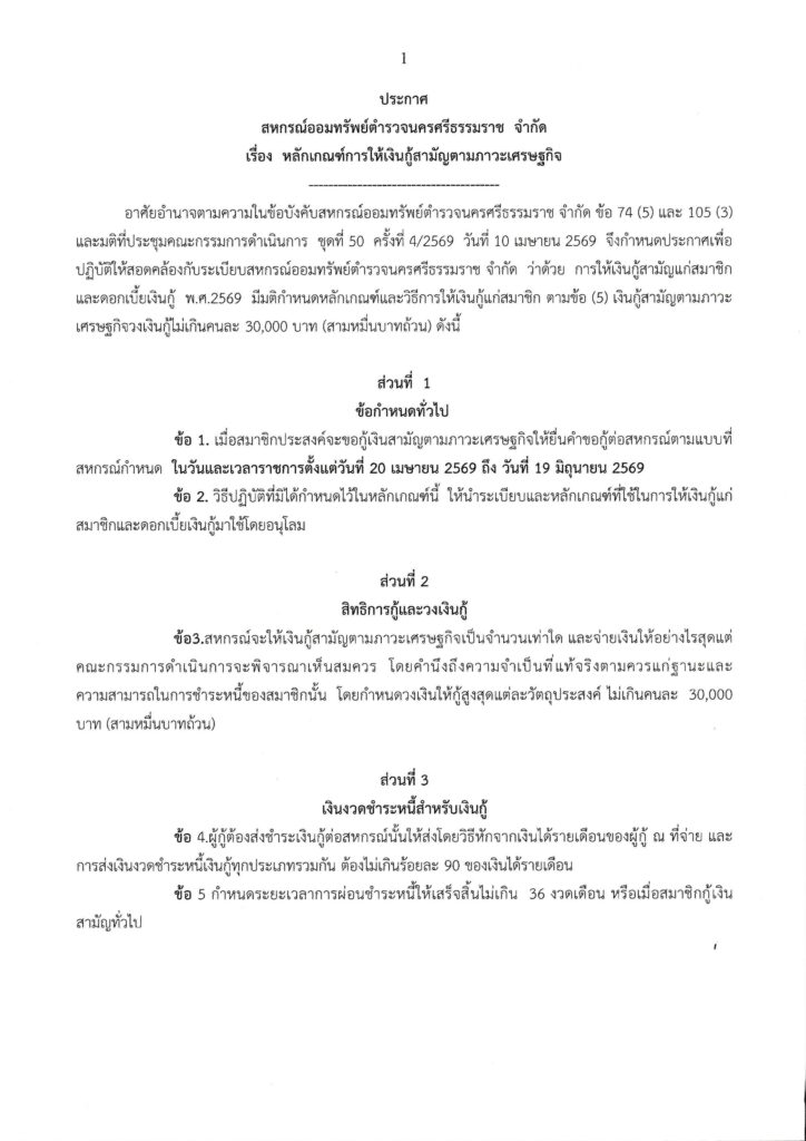 ประกาศ สหกรณ์ออมทรัพย์ตำรวจนครศรีธรรมราช จำกัด เรื่อง หลักเกณฑ์การให้เงินกู้สามัญตามภาวะเศรษฐกิจBy Admin_coop / April 20, 2026 ประกาศ เรื่องหลักเกณฑ์การให้เงินกู้สามัญตามภาวะเศรษฐกิจ Views: 0