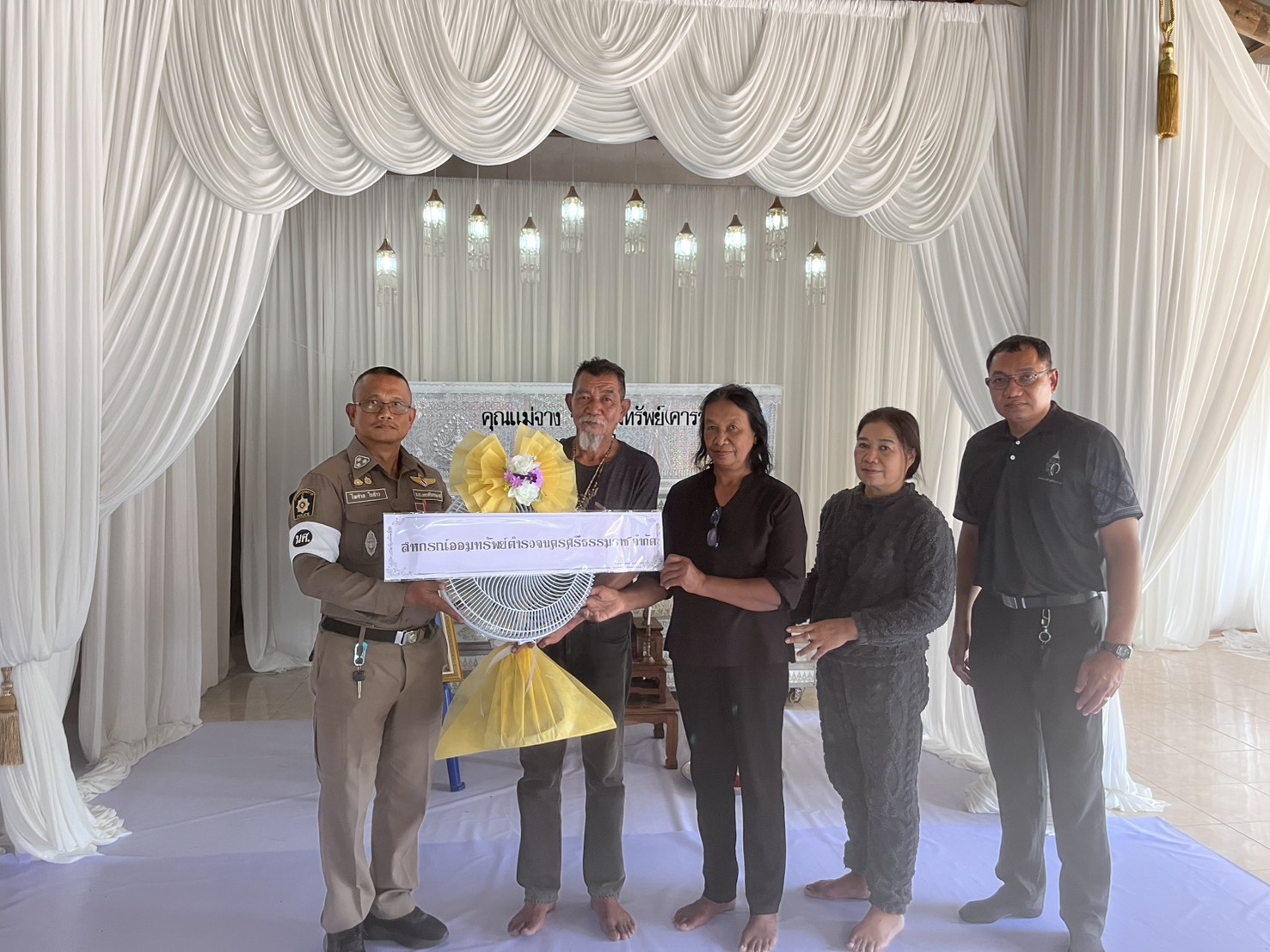 วันที่ 16 กุมภาพันธ์ 2569 สหกรณ์ออมทรัพย์ตำรวจนครศรีธรรมราช จำกัด โดย พ.ต.อ.สมพร พฤศวานิช ประธานกรรมการ มอบหมายให้ ร.ต.อ.ไพศาล ใจห้าว กรรมการ เป็นตัวแทนสหกรณ์ออมทรัพย์ตำรวจนครศรีธรรมราช จำกัด นำวางหรีดเคารพศพคุณแม่จ่าง สมทรัพย์ (คารว์) มารดาของ ร.ต.อ.สุวุฒิ สมทรัพย์ สมาชิกสังกัดผู้รับเงินบำนาญ เจ้าภาพได้ตั้งบำเพ็ญกุศลศพ ณ สำนักสงฆ์ป่าคลองกรุงหยัน หมู่ที่ 5 ตำบลกรุงหยัน อำเภอทุ่งใหญ่ จังหวัดนครศรีธรรมราช และกำหนดพิธีพระราชทานเพลิงศพ ในวันที่ 19 กุมภาพันธ์ 2569 ณ ฌาปนสถาน สำนักสงฆ์ป่าคลองกรุงหยัน