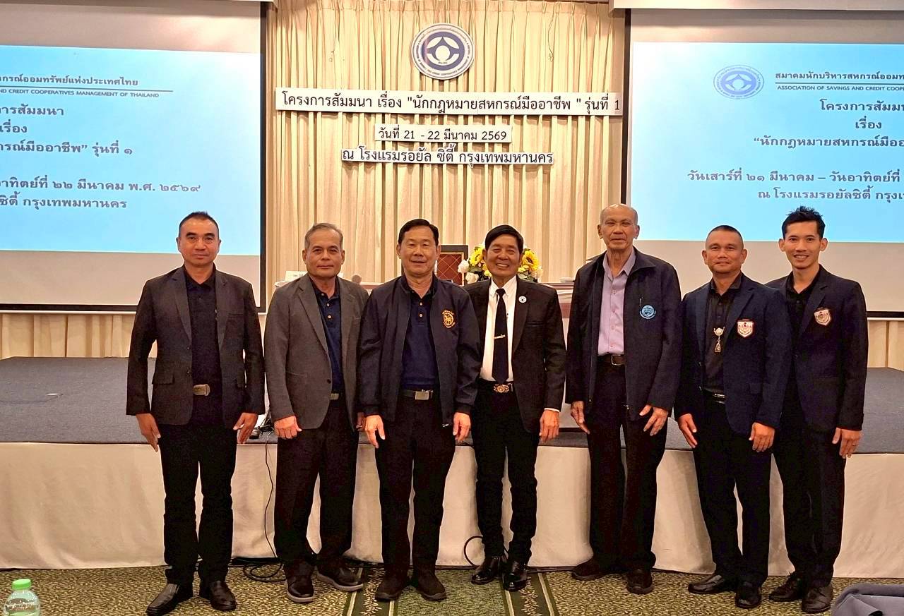 สหกรณ์ออมทรัพย์ตำรวจนครศรีธรรมราช จำกัด มอบหมายให้ ร.ต.อ.ไพศาล ใจห้าว กรรมการ และนายธนาวุฒิ พานทอง นิติกร เข้าร่วมโครงการสัมมนา เรื่อง “นักกฎหมายสหกรณ์มืออาชีพ” รุ่นที่ 1 ระหว่างวันที่ 21–22 มีนาคม 2569 ณ โรงแรมรอยัลซิตี้ ห้องกรุงเทพ บอลรูม ชั้น 2 เขตบางพลัด กรุงเทพมหานคร จัดโดยสมาคมนักบริหารสหกรณ์ออมทรัพย์แห่งประเทศไทย
